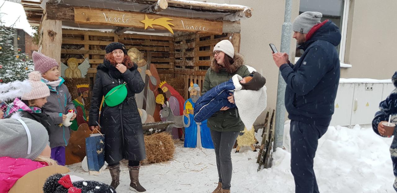 První adventní neděli bylo také rozsvěcení vánočního stromečku a vítání našeho nového občánka Adámka. Akce byla milá, konala se před i uvnitř v místní hasičárně, kterou moc hezky upravili společnými silami místní hasiči. Náklady na lino hradila obec. Na základě darovací smlouvy nám bylo vymalováno a dostali jsme též kamna, aby bylo teplo. Hasičárna tedy velmi ožila a bude žít dál. Obec si zřídila živnost na hostinskou činnost a proto může nyní pořádat akce s občerstvením a výtěžky z těchto akcí použít na další akce nebo na rekonstrukce a pomoc, kde bude třeba. Všem, kdo přišli a bavili se, děkujeme. Výherkyně za nejlepší dobrotu vyzveme k převzetí cen. Vyhrály věnečky....mňam:-), Terezce M. děkujeme moc a moc za krásný betlém pro naši obec. Chlapům, kteří betlém stavěli, obstarali stromeček a rekonstruovali hasičárnu děkujeme také moc a moc. Děkujeme za obsluhu, za vystoupení dětí a nácvik představení.